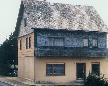 Das Haus von Strumpwewersch (Heute Kunz) vor 1950. Die eine Hälfte wurde Anfang der 50er Jahre abgerissen und bis 1954 neu errichtet, 2. Bild. Danach wurde die zweite Hälfte abgerissen und das Haus fertiggestellt. 3. Bild von 1995.